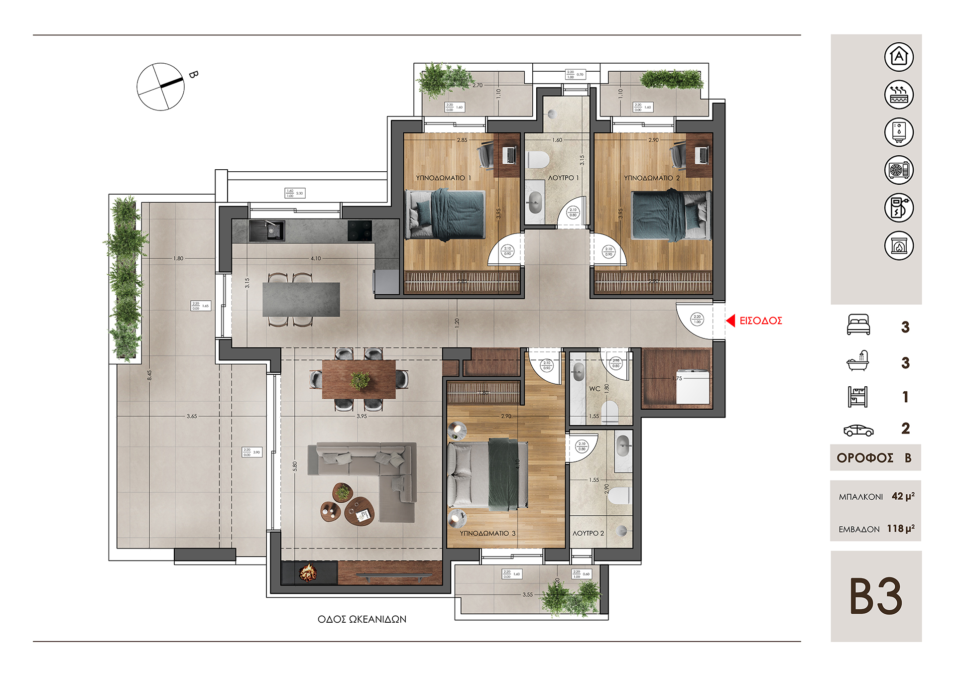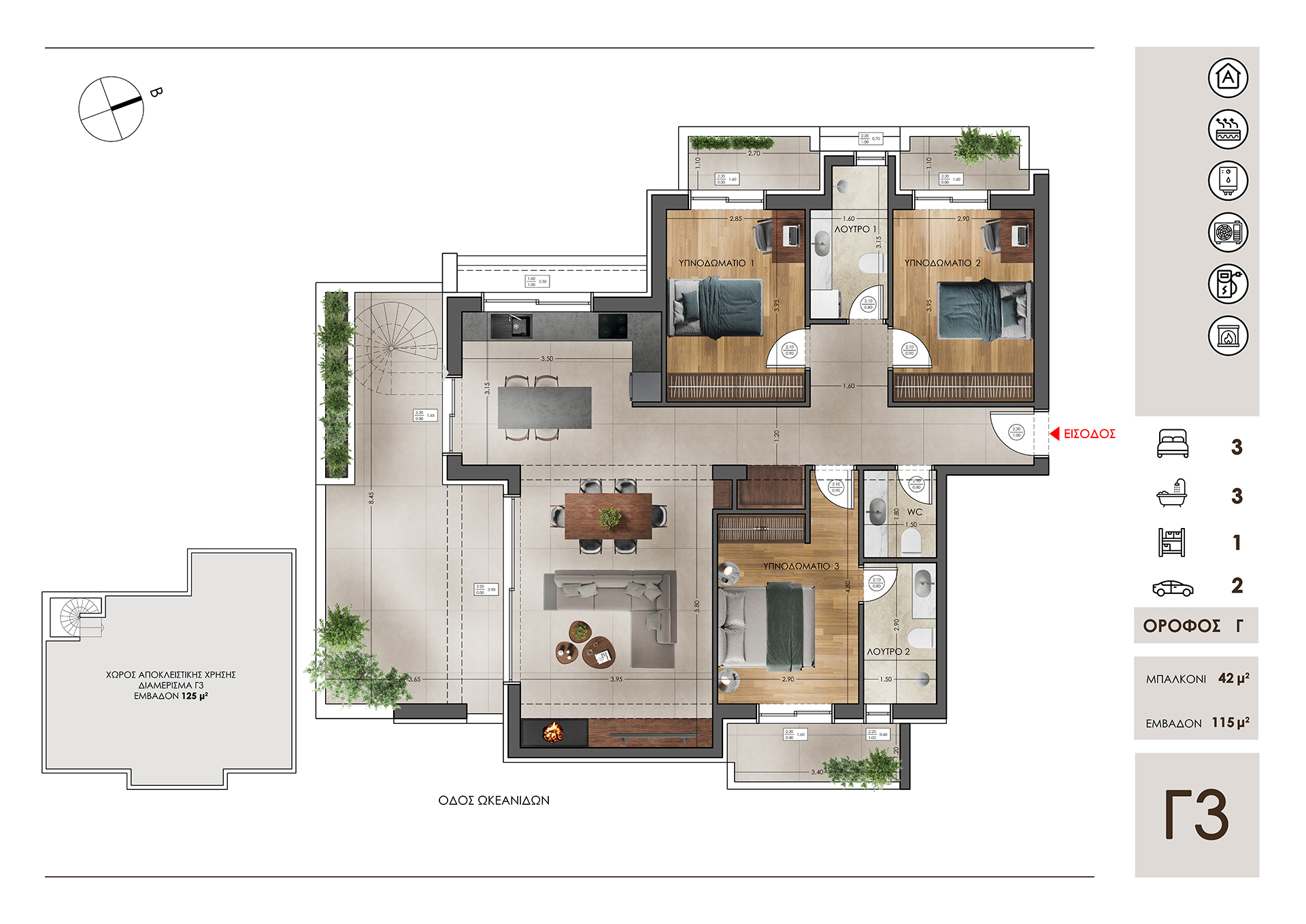 Το νέο κτίριο κατοικιών στo Μαρούσι , σε ένα πολύ ήσυχο σημείο, σε απόσταση περίπου 1 χλμ από το δακτυλίδι της Αττικής οδού, φιλοξενεί συνολικά 10 διαμερίσματα (1ΥΔ, 2ΥΔ και 3ΥΔ) και αναπτύσσεται σε 3 ορόφους. Ένα διαμέρισμα 3ου ορόφου έχει πρόσβαση ξεχωριστά σε δικό τoυ Roof Garden στο χώρο του δώματος ενώ για 3 διαμερίσματα υπάρχουν και χώροι τοποθέτησης ατομικών φωτοβολταικών συστημάτων. Στο κτίριο υπάρχουν συνολικά 13 θέσεις στάθμευσης (υπογείου και πυλωτής).