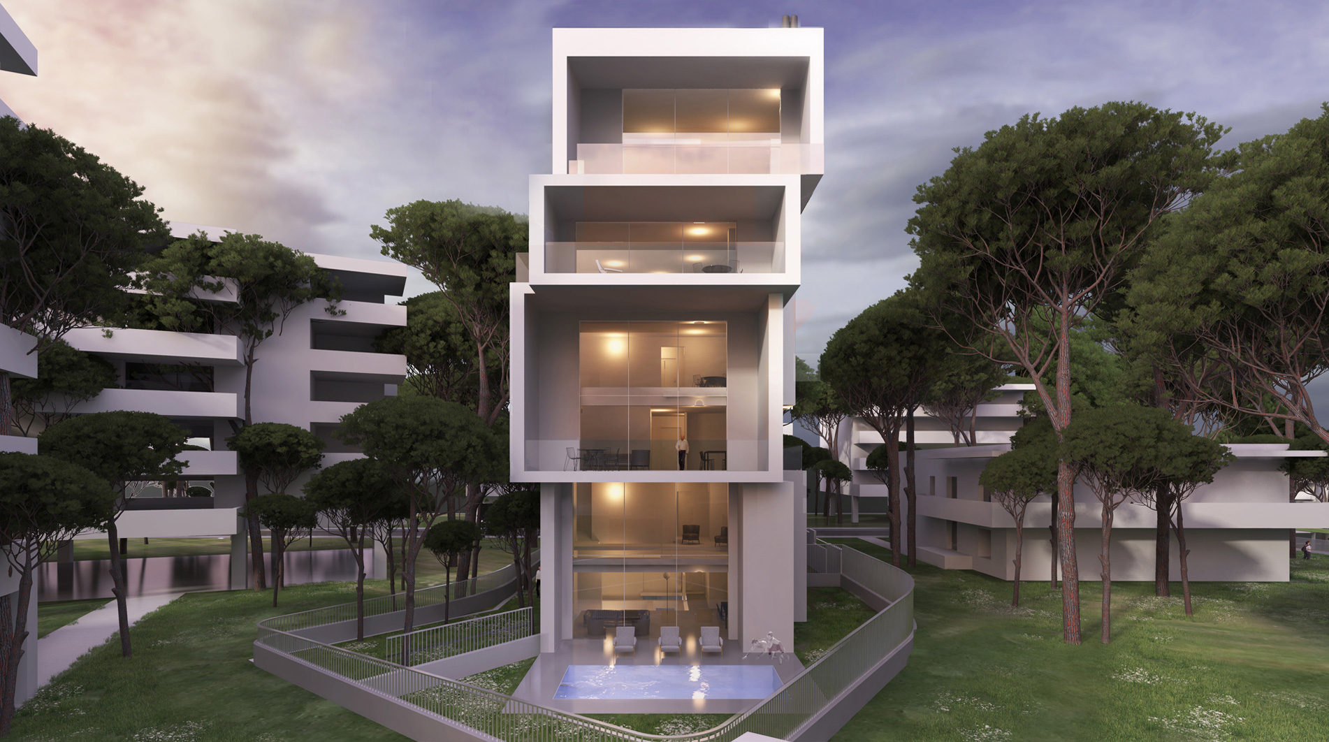 This is achieved by assigning a unique and distinct volume to each home. Each volume / residence is broken down by the rest of the building, thus giving a sense of uniqueness.